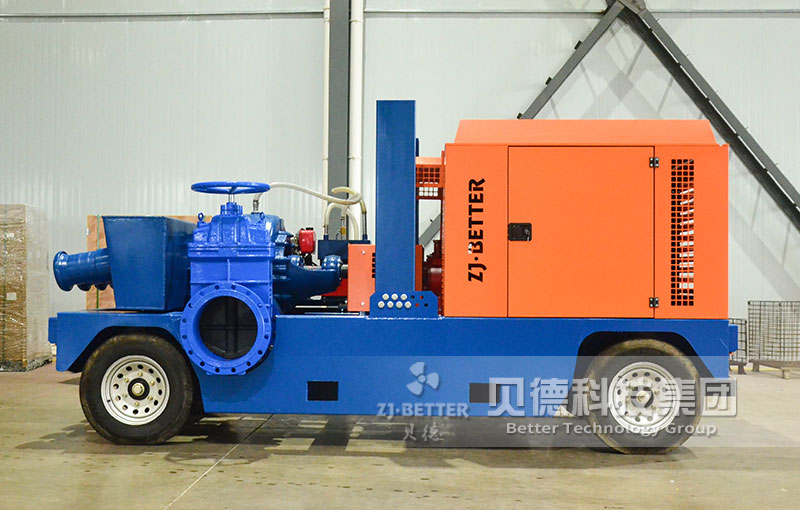 當(dāng)柴油機(jī)啟動時,其動力通過傳動裝置傳遞給移動泵車泵軸,使軸帶動葉輪旋轉(zhuǎn)。在葉輪旋轉(zhuǎn)的過程中,液體被吸入葉輪的進(jìn)口,由于葉輪的離心力作用,液體被甩向葉輪的邊緣,并進(jìn)入下一級葉輪的進(jìn)口或者從泵的出口排出。