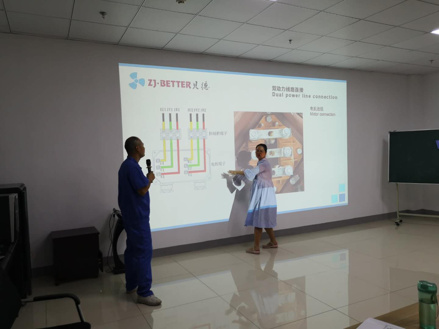 次日清晨,便于公司大樓衢州西聯(lián)大廈組織歡迎儀式,兩方團(tuán)隊(duì)特此交流認(rèn)識(shí),以便更好的開展為期一周的學(xué)習(xí)交流會(huì)。圖為中國(guó)·貝德科技有限公司專業(yè)研發(fā)人員邱師傅為馬爾代夫客戶團(tuán)隊(duì)講解電機(jī)基礎(chǔ)知識(shí)以及電機(jī)的整個(gè)生產(chǎn)工藝。為幫助馬爾代夫客戶團(tuán)隊(duì)更好的理解,同時(shí)特別安排專業(yè)翻譯,為現(xiàn)場(chǎng)學(xué)習(xí)的國(guó)際友人做精準(zhǔn)翻譯。